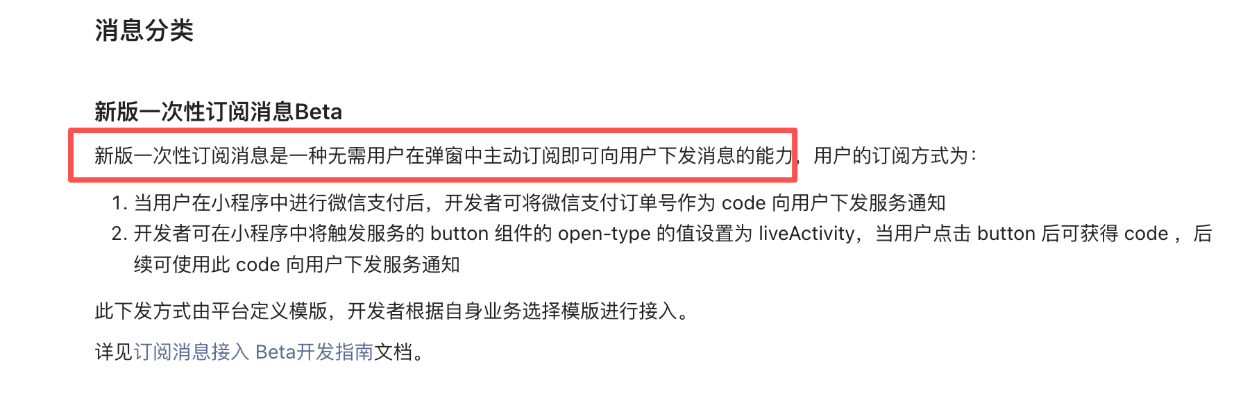 你好,新版一次性订阅消息是一种无需用户在弹窗中主动订阅即可向用户下发消息的能力,具体可参考新版一次性订阅消息开发指南