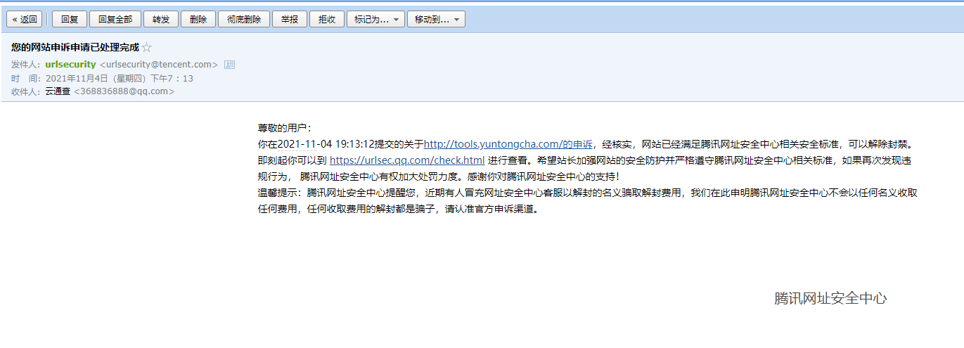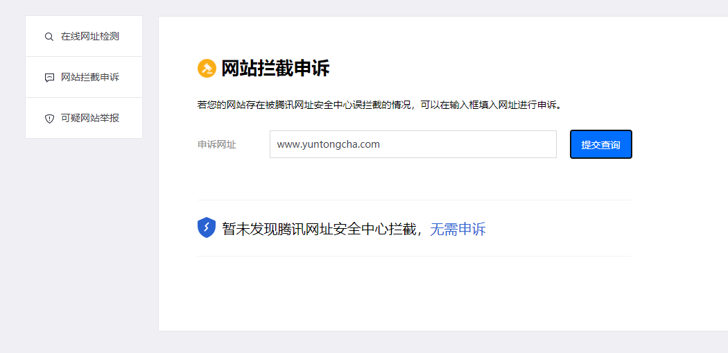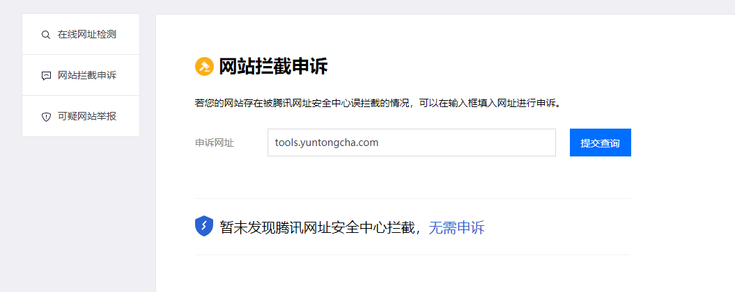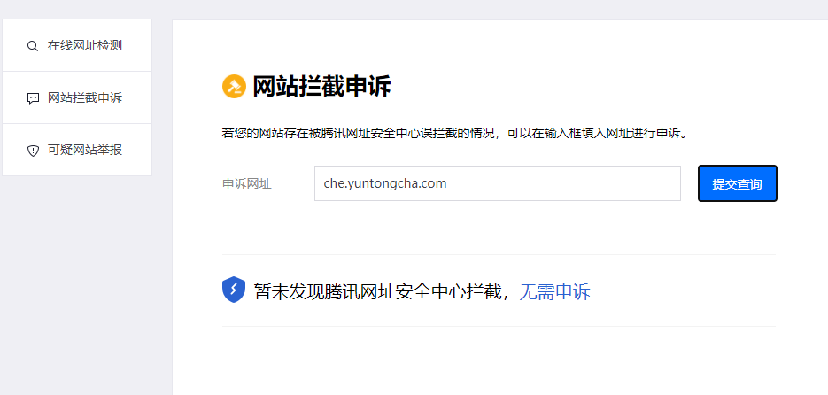 我的域名全部被拦截了域名是这些:www.yuntongcha.com,tools.yuntongcha.com,che.yuntongcha.com 我上传图片给大家看看是怎回事。