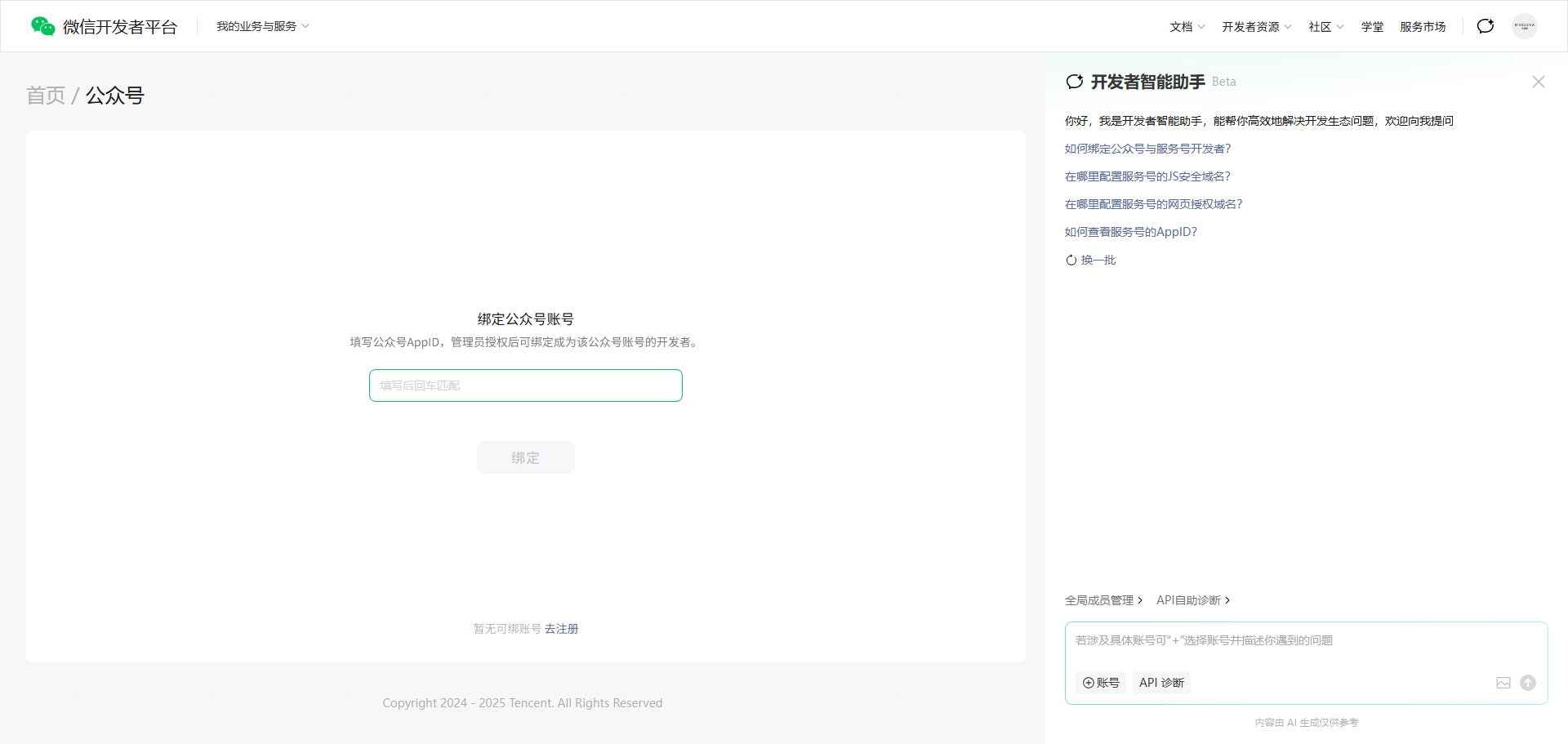 找不到微信公众号开发者ID(APPid),功能迁移但是新的端口还是需要公众号开发者ID(APPid)绑定公众号