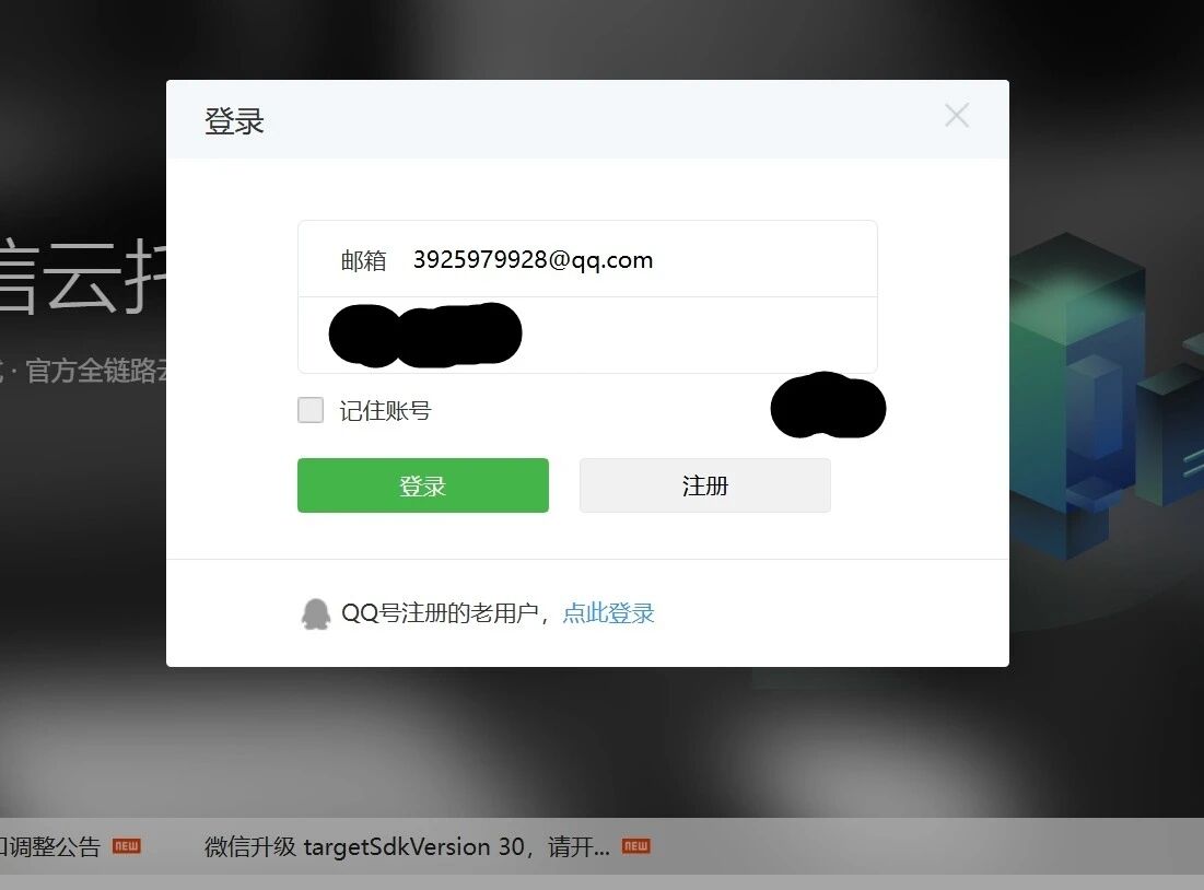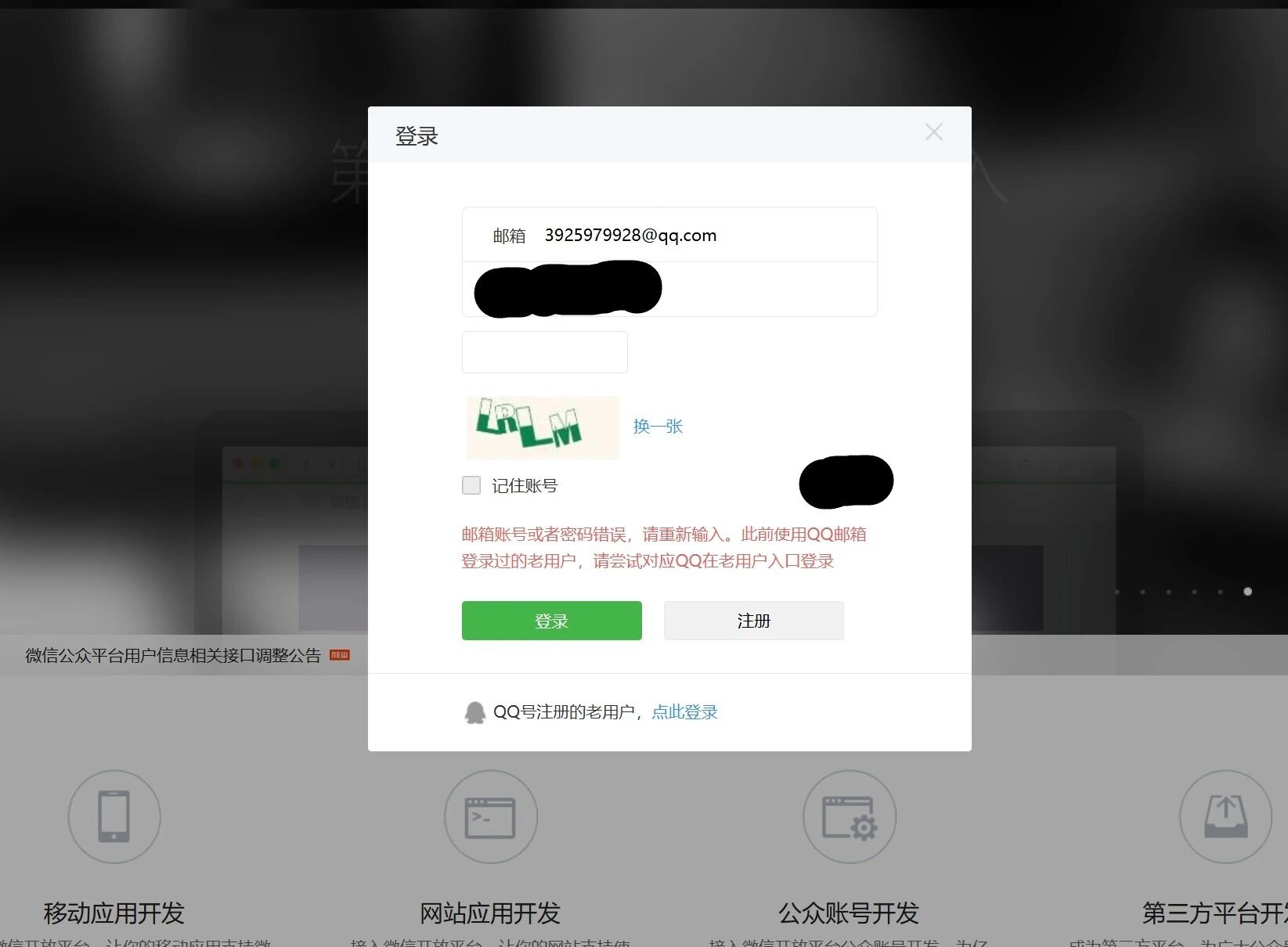 在关联设置开放平台哪里绑定总出现密码不,密码是对的,我一直在登录给微信,不断的往复。