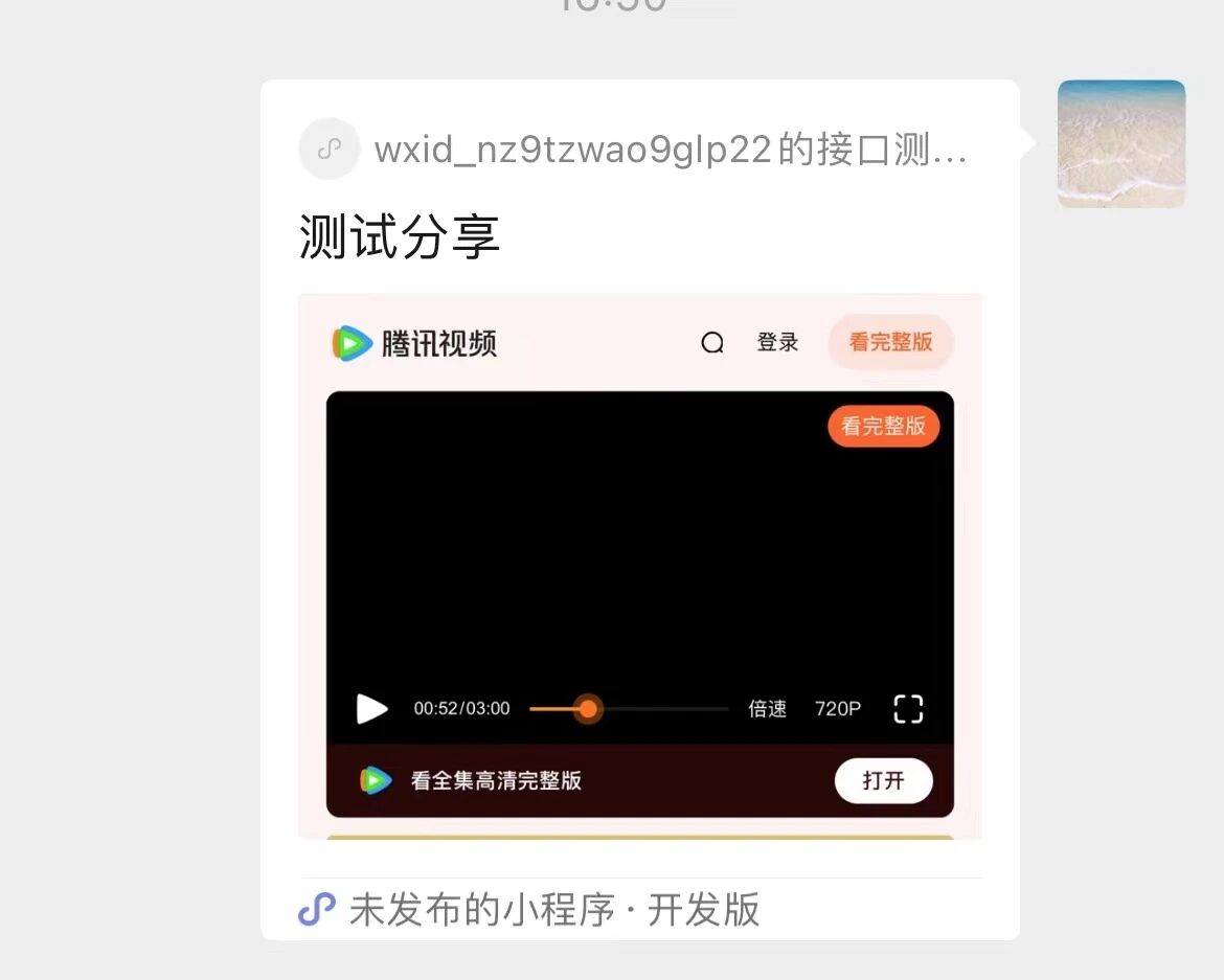 复现步骤:开发者工具,手机预览,打开调试模式,视频播放后右上角分享。