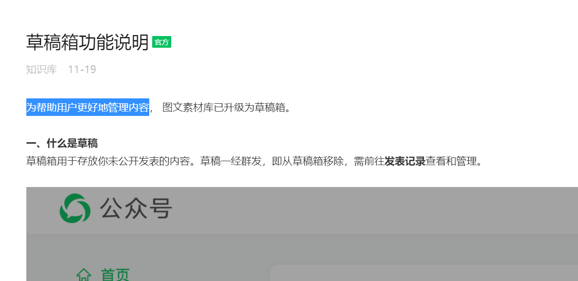 为帮助用户更好地管理内容, 图文素材库已升级为草稿箱。