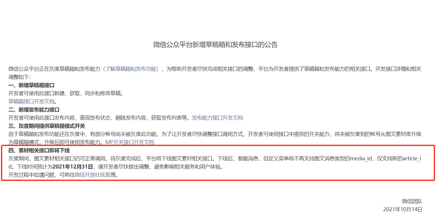 为帮助用户更好地管理内容, 图文素材库已升级为草稿箱。