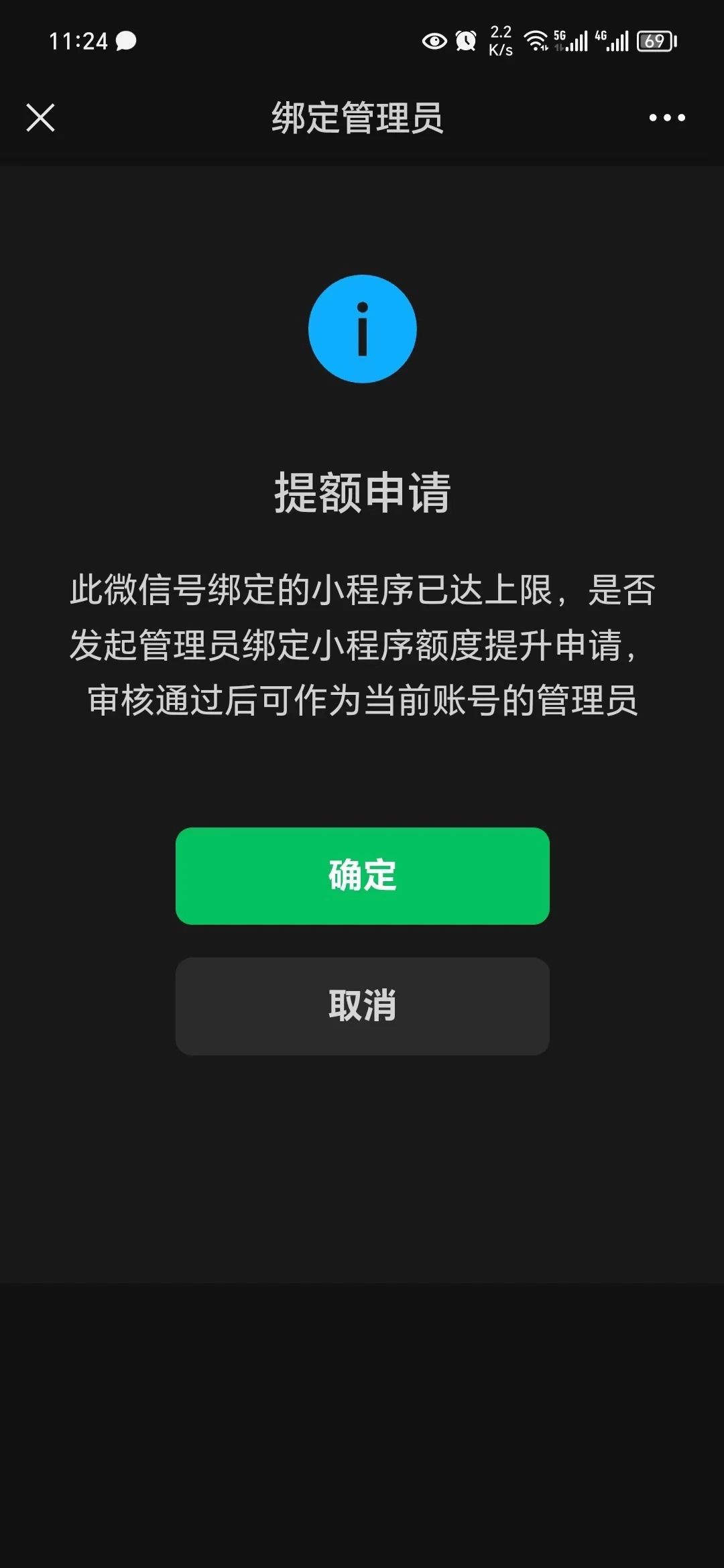 目前备案过程中发现法人做为小程序管理员的时候可以申请提额,具体能提额几个没有具体测试过。
