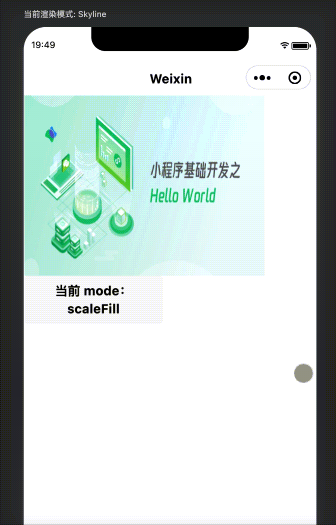 skyline 模式下无法动态切换 image 的 mode。左gif(webview)正常,右gif 切换无效,详见分享的代码片段:https://developers.weixin.qq.com/s/u3pE7rm8875b