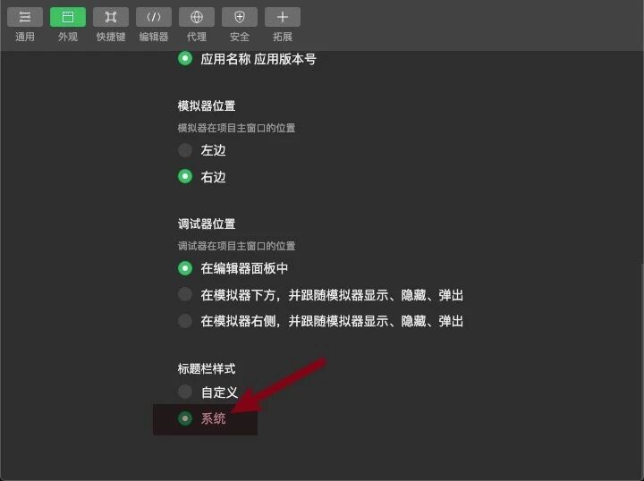 勾选「系统」后重启开发者工具就可以了。