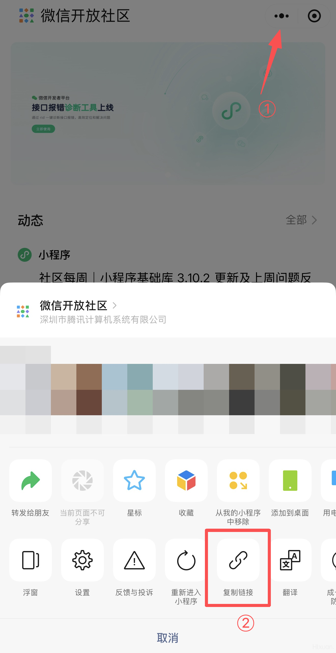 2、在小程序 右上角胶囊按钮三个点 -- 复制链接 获取。