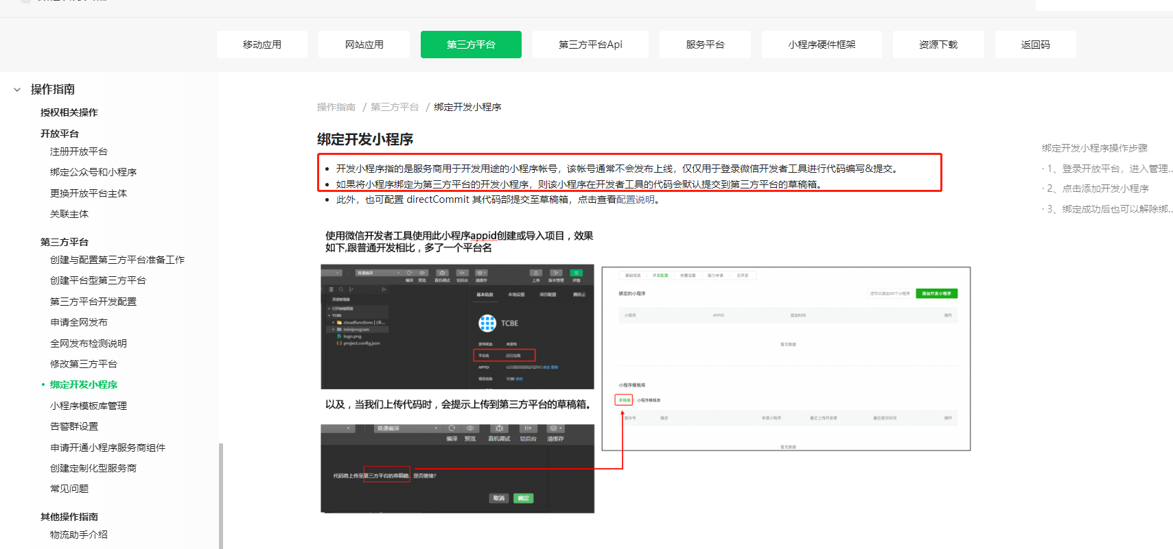 另外也请开发者了解下开发小程序的基本概念https://developers.weixin.qq.com/doc/oplatform/Third-party_Platforms/2.0/operation/thirdparty/dev.html
