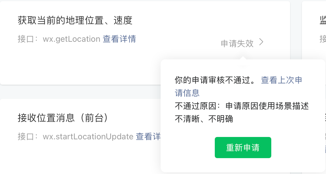 做的是一个预约报名工具,需要获取用户的地理位置解析出所在城市,根据城市展示不同活动信息。申请地理位置接口权限十几次都不通过。