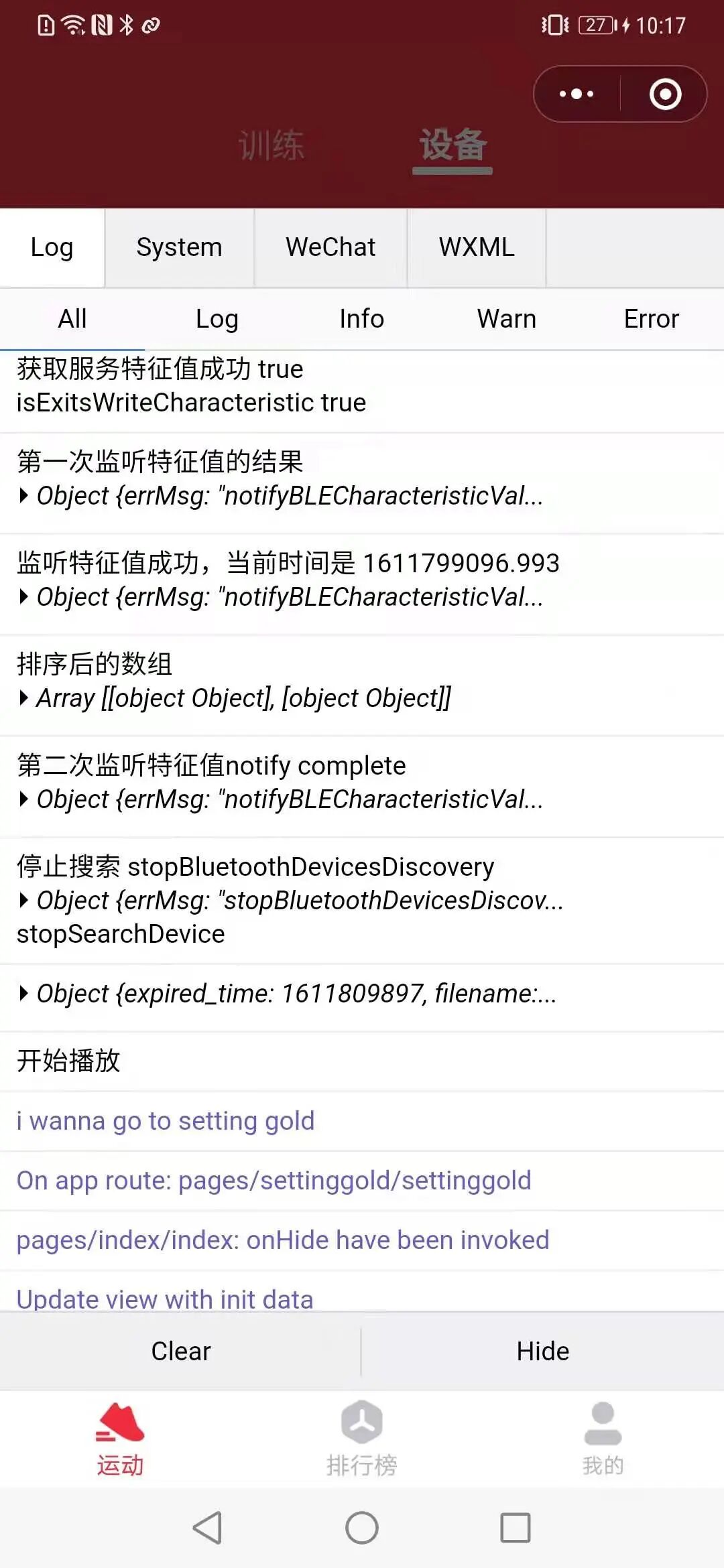 4、监听成功后,我返回到小程序,可以看到此时立即有特征值返回了