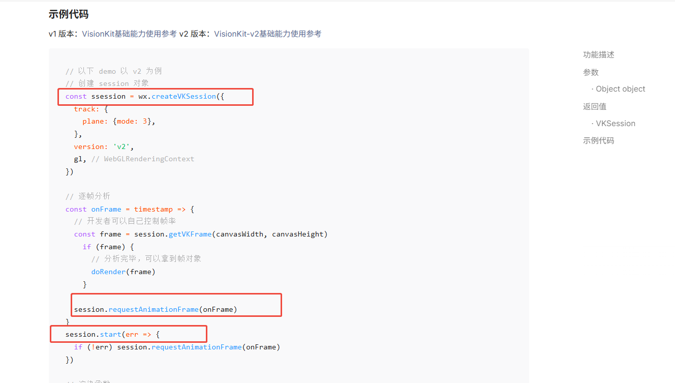 https://developers.weixin.qq.com/miniprogram/dev/api/ai/visionkit/wx.createVKSession.html