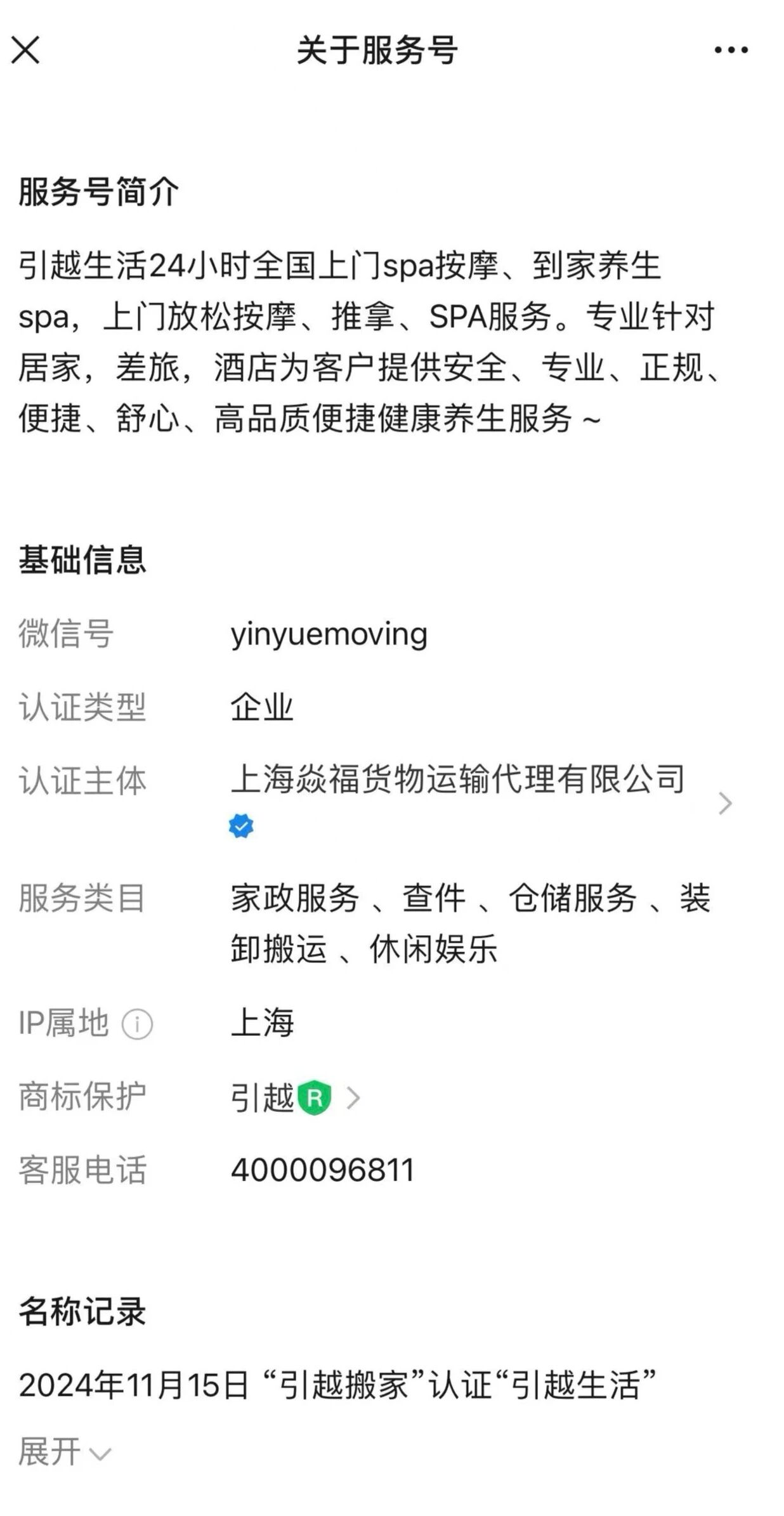 异常内容:认证账号商标的使用范围是 45 类,根据中国商标局查询结果,核定使用范围内容是(私人保镖(4501)、临时照料宠物(4502)、社交护送(陪伴)(4502)、临时照看婴孩(4502)、临时看管房子(4502)、服装出租(4503)、计算机软件许可(法律服务)(4506)、诉讼服务(4506)、知识产权咨询(4506)、法律研究(4506),账号内容是提供上门按摩服务,请问腾讯官方,这种账号是怎么通过审核的,为什么反馈多次仍然不予处理,并且官方还给这种账号服务内容的核心关键词,服务号排名第一的流量扶持,是有内幕还是 BUG???