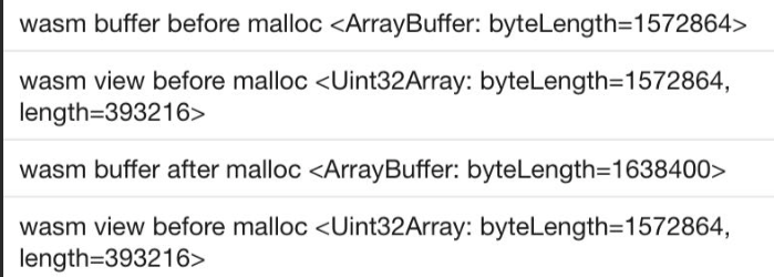 i32.const0 loop (param i32) ;; label = @1 local.set 2 local.get 2 i32.const 10 i32.lt_s if ;; label = @2 call 16 drop local.get 2 i32.const 1 i32.add local.tee 3 br 1 (;@1;) end i32.const 0 drop end;; 对应的伪代码 ;; for q = 0; q < 10; q = q + 1 { ;; ffe() ;; }iPhone XR iOS 8.0.39 调试基础库 2.32.3 依然存在view在malloc之后byteLength依然为旧值的情况