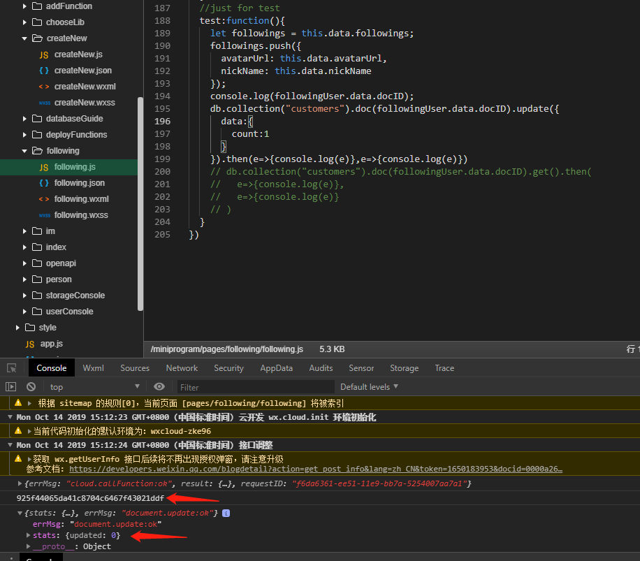 如下图我在小程序端使用doc(id).updata()总是无法更新云数据库数据。