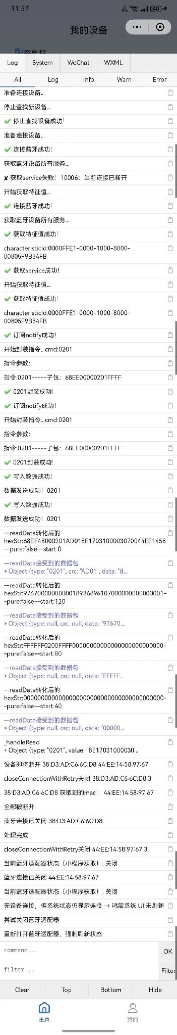 提示处理成功,无设备连接,蓝牙状态已关闭,关闭蓝牙适配器正常,重启蓝牙适配器也正常