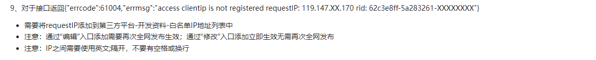 为什么配置了白名单还是会这样说我没注册ip呢?求解答很急!!