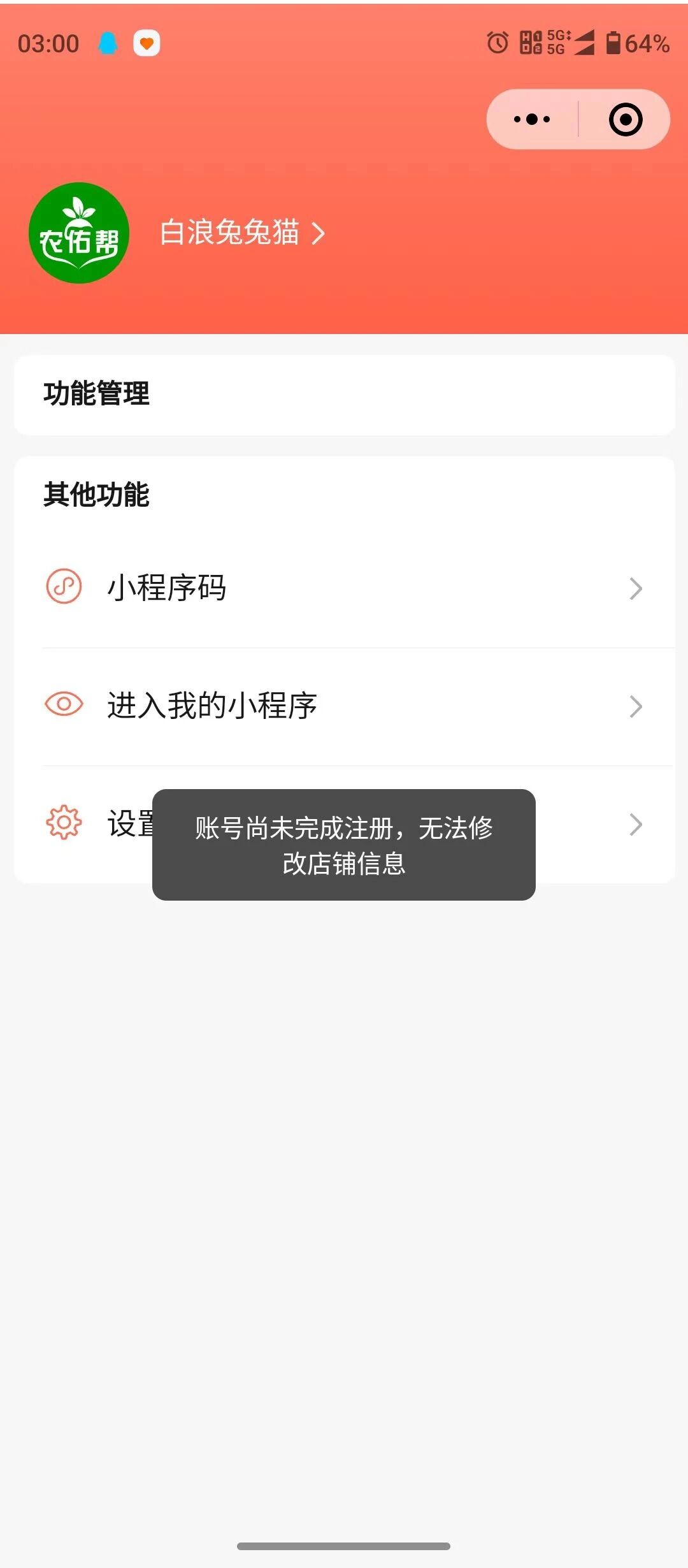 微信小商店提示尚未完成注册无法修改店铺信息,无法注销,在公众平台安全助手里还能查询到绑定了管理员,无法管理也无法注销,看着很难受,都不知道怎么出来的这么个小商店