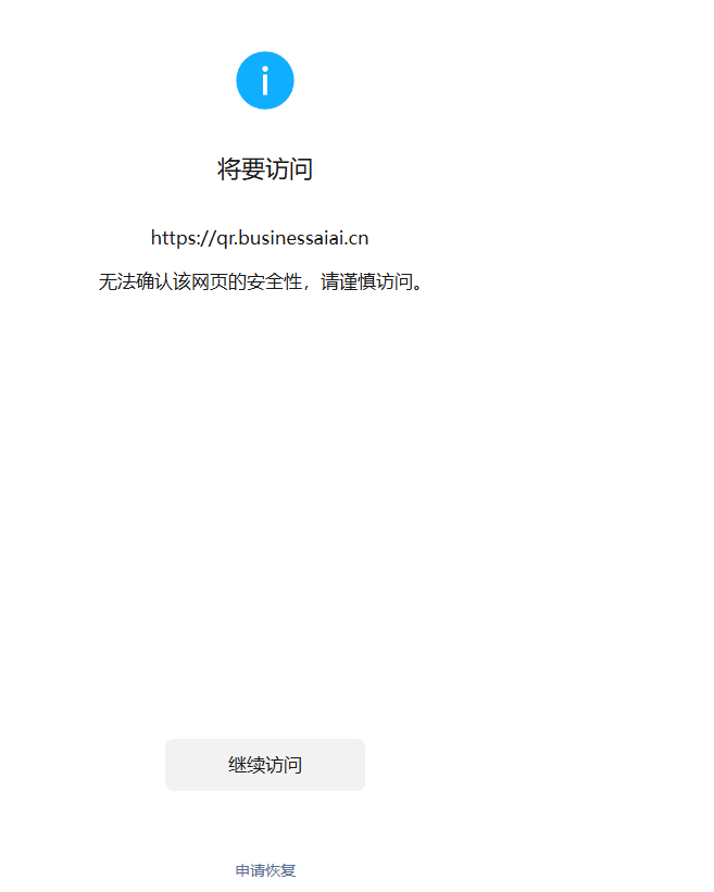 配置普通二维码链接时,扫描二维码是,被提示”无法确认网页的安全性。“