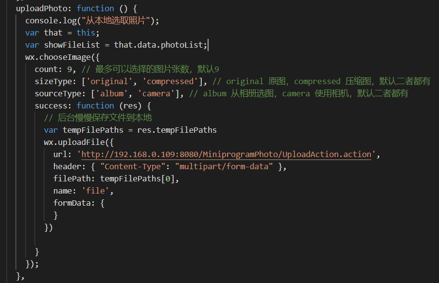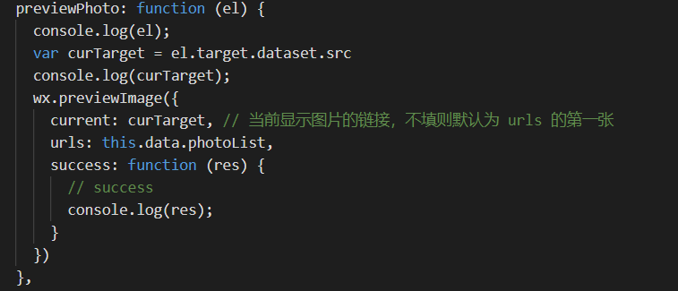 预览方法里,urls是所有图片src的数组,要把photolist里面每个图片url组成一个数组作为urls的值