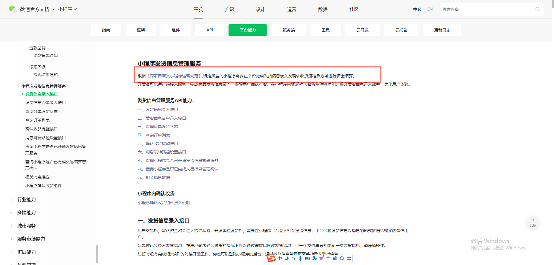 https://developers.weixin.qq.com/miniprogram/dev/platform-capabilities/business-capabilities/order-shipping/order-shipping.html#%E4%B8%80%E3%80%81%E5%8F%91%E8%B4%A7%E4%BF%A1%E6%81%AF%E5%BD%95%E5%85%A5%E6%8E%A5%E5%8F%A3