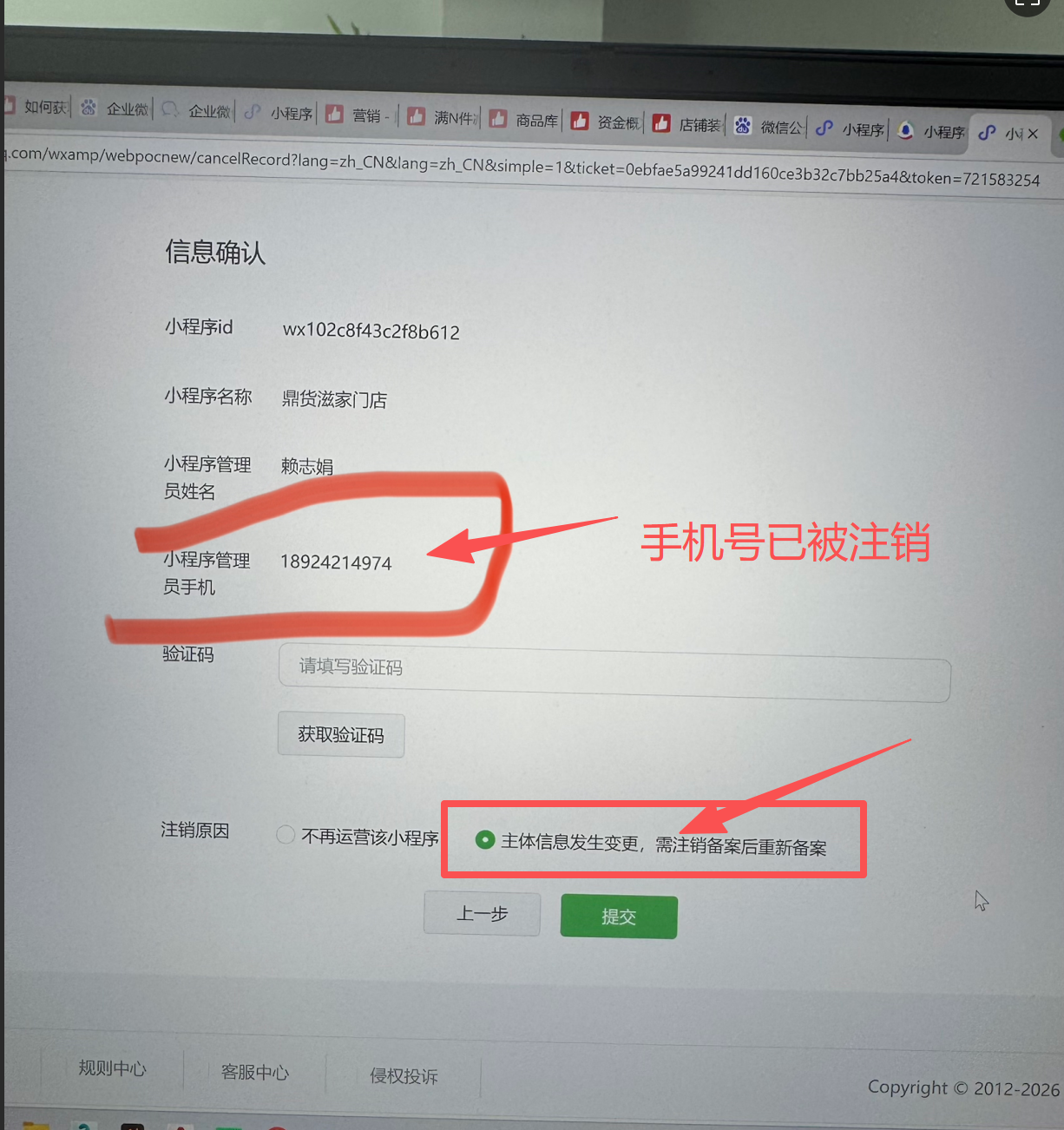 更换主体以后需要重新备案,但是注销备案环节还是出现原先管理员名字信息