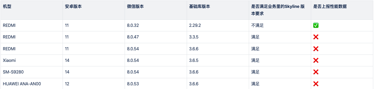 经排查,大致范围确定是使用 wx.getPerformance 获取性能数据进行上报时,在 entryType 为 navigation 时,appLaunch 节点没有被触发。(测试时,机型:REDMI,操作系统:Android 11,微信版本:8.0.54,基础库版本:3.6.6 2024.11.24 21:13:21)