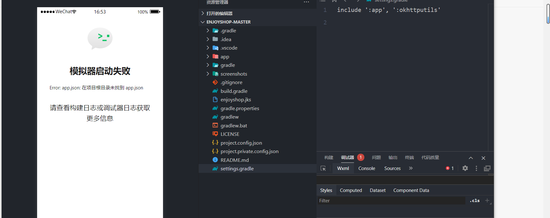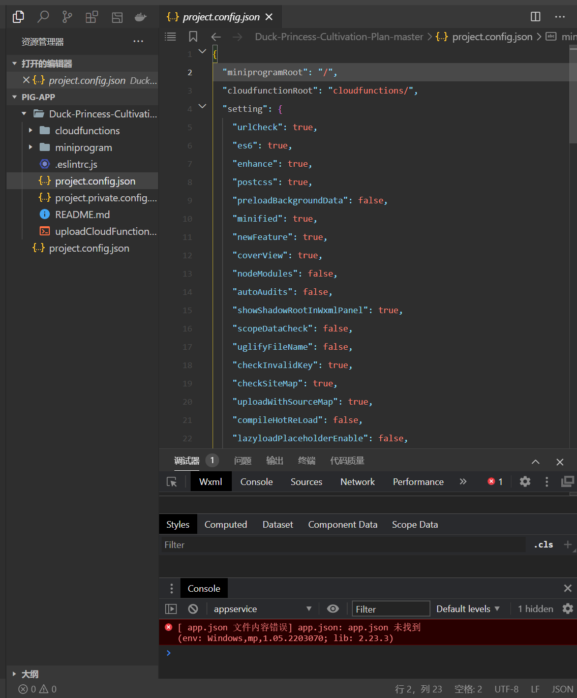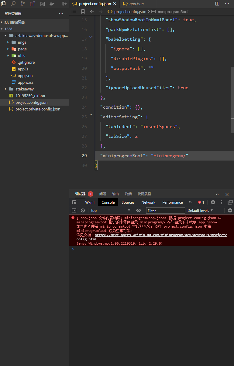 入口目录错误。你的app.json在 miniProgram里。所以你需要自己设置下,把 miniprogramRoot