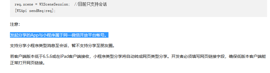 发起分享的App与小程序属于同一微信开放平台帐号,什么意思?