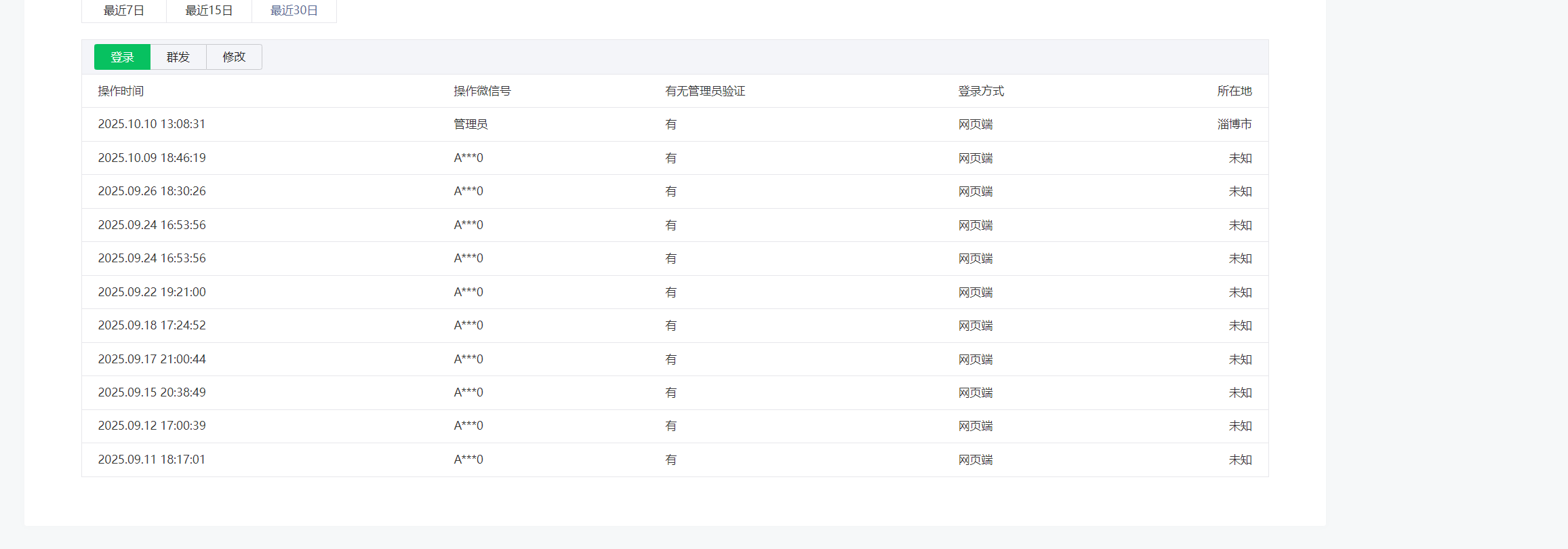 目前管理员本人账号登陆后,所在地不定时的显示为 未知。而其他运营者账号登陆后,所在地 均显示为 未知。无法正确显示对应所在地。