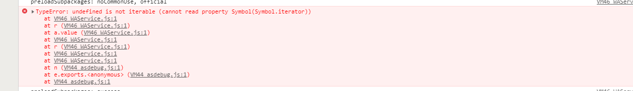 你好,看下是不是和下面的开发者遇到的情况一样:开发工具提示错误 undefined is not iterable?? 迷箴 的评论 - 微信开放社区 https://developers.weixin.qq.com/community/develop/doc/000240ddf443202d4759b00d556000?highLine=%E5%B7%A5%E5%85%B7%20undefined%20is%20not&jumpto=reply&commentid=000eea66d18918201279ebe09514&parent_commentid=0002ec765aca50c56a59b754f5bc
