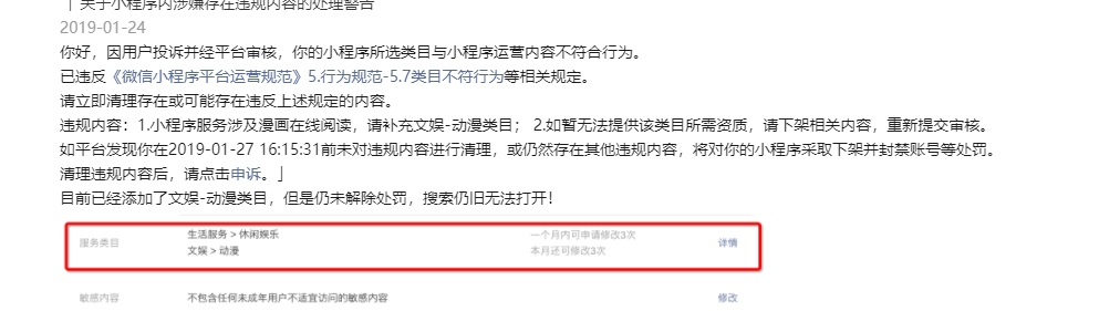 小程序显示所选类目与运营不符,但是后台没有违规通知,这是什么情况?