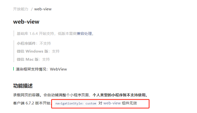 微信小程序嵌套H5,自定义顶部标题失效,"navigationStyle": "custom",是什么原因呢?我想在顶部标题加logo