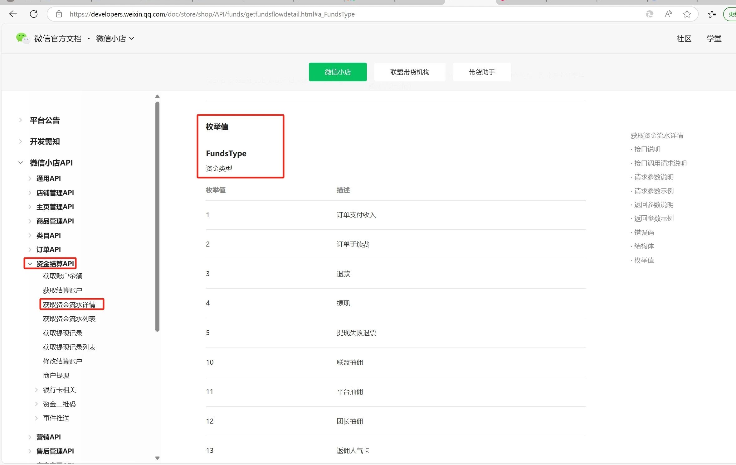 https://developers.weixin.qq.com/doc/store/shop/API/basics/ChangeLog.htmlhttps://developers.weixin.qq.com/doc/store/shop/API/funds/getfundsflowdetail.html