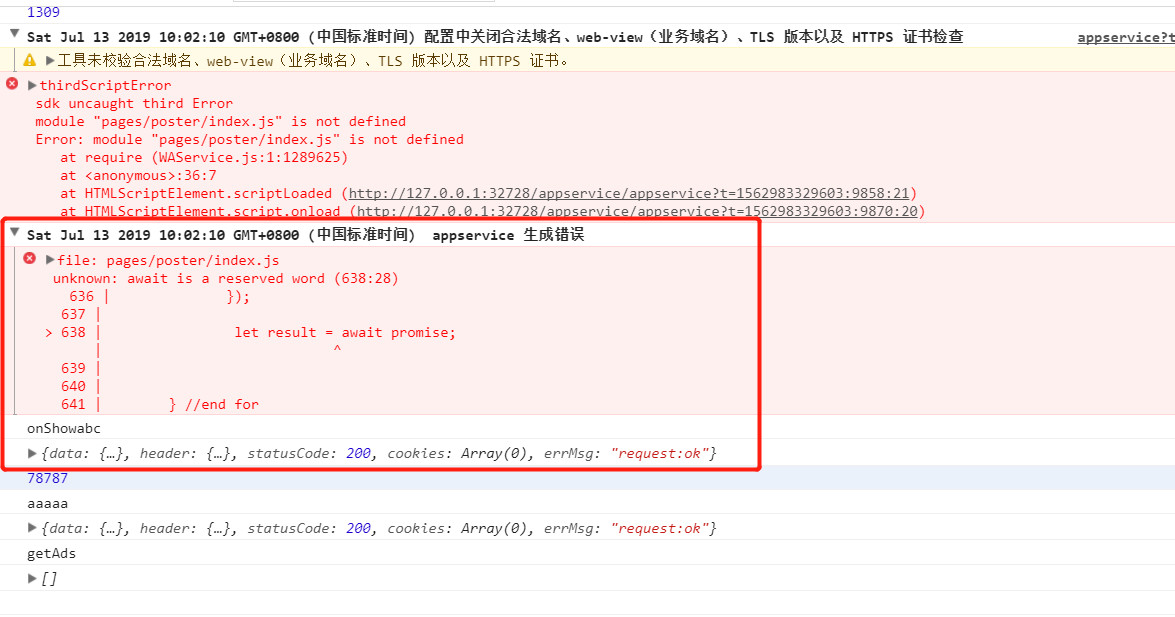 还有你这代码写的,看的都头疼,你想把上传文件封装成一个promise,那你就抽出来封装,干嘛写到业务里面,而且还把业务逻辑又都写到promise里了,你这么写还不如直接用.then写更方便了,而且你async应该是放错位置了,应该是放在wx.chooseImage的success那里。