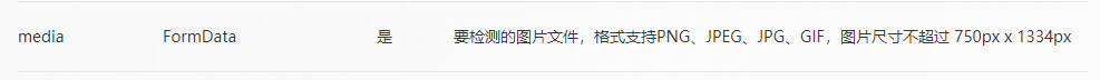 请问formData的格式应该是什么样子的,尝试传过文件路径、文件名(不包含前缀路径)、图片byte[],都返回的是media data missing。