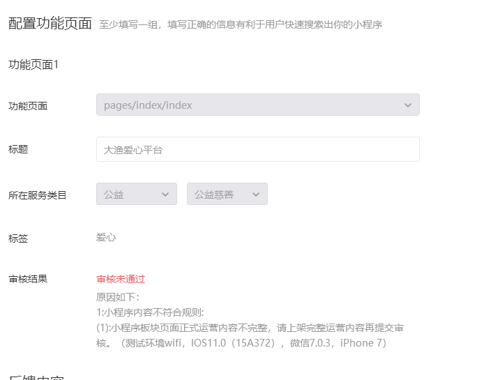 只是怎么回事,上次说添加一下慈善类目就行了,可是为啥我添加上了今天提交审核还是给与不通过????急急急!!!