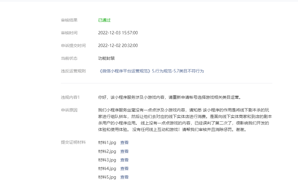 极端情况下,一个规规距距的小程序,被几次误判后就永久封禁了,岂不是很荒唐