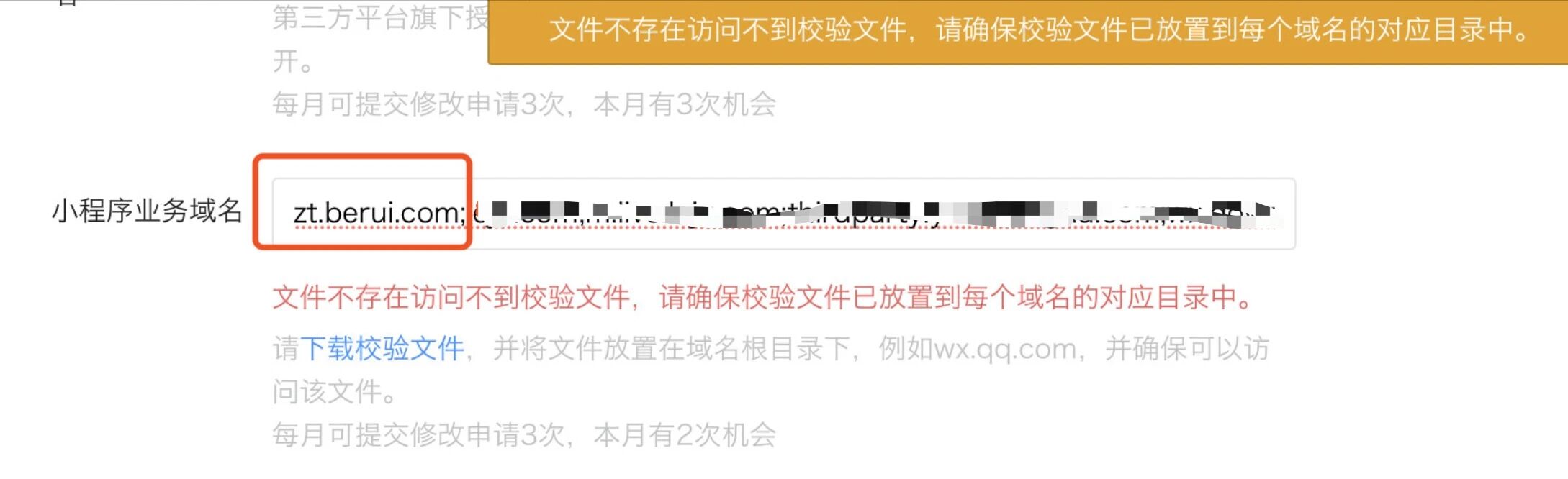 目前不少开发者在设置业务域名时,发现检查校验文件失败,可先按照如下步骤进行自查: