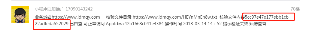 目前不少开发者在设置业务域名时,发现检查校验文件失败,可先按照如下步骤进行自查: