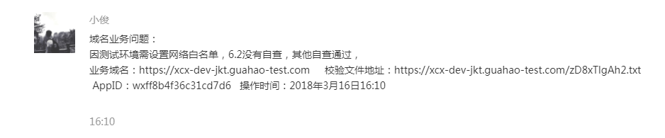 业务域名:https://xcx-dev-jkt.guahao-test.com 校验文件地址:https://xcx-dev-jkt.guahao-test.com/zD8xTlgAh2.txt