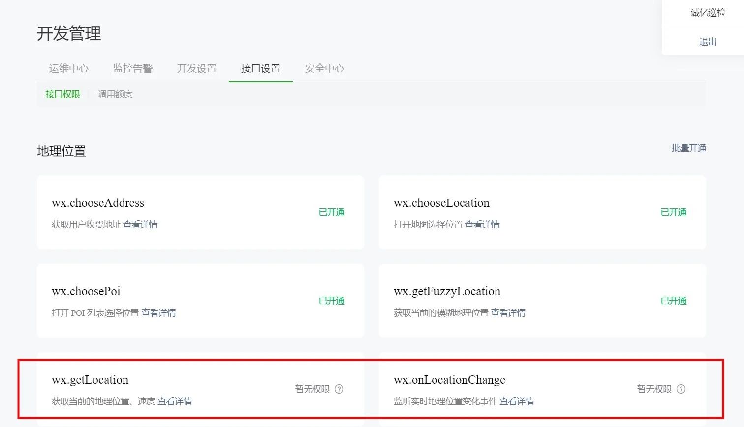 wx415ab6dbfa41c07b,需要开通哪个类目才有wx.chooseLocation权限