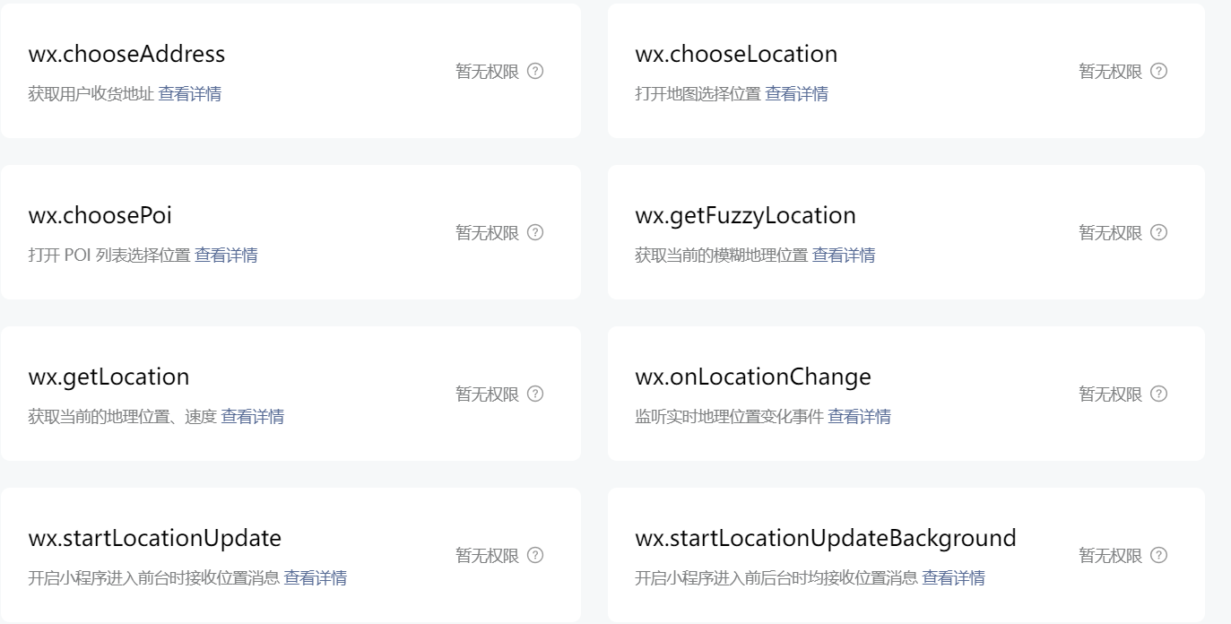 新申请小程序,不知道为什么,这几个地理位置都是暂无权限 wx695330f4949b037f