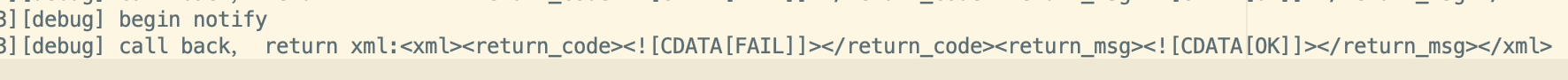 [2019-09-15 01:22:39][debug] call back, return xml:<xml><return_code><![CDATA[FAIL]]></return_code><return_msg><![CDATA[OK]]></return_msg></xml>