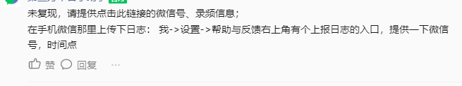 在手机微信那里上传下日志: 我->设置->帮助与反馈右上角有个上报日志的入口,提供一下微信号,时间点