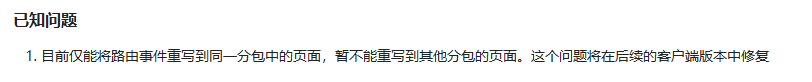 预期将主包的页面迁移到子包中以减少主包体积,所以想要使用 rewriteRoute 方法进行路由重写,但是有问题,提示 “Component is not found in path "wx://not-found".” 看了下社区提的问题,普遍都说不支持跨包路由重写,如果这样的话这个API也太鸡肋了,完全可以使用 redirectTo 替代 虽然交互不太友好,页面会闪动:访问页面A-B-C 而不是 A-C 但是最起码功能是没有问题的。