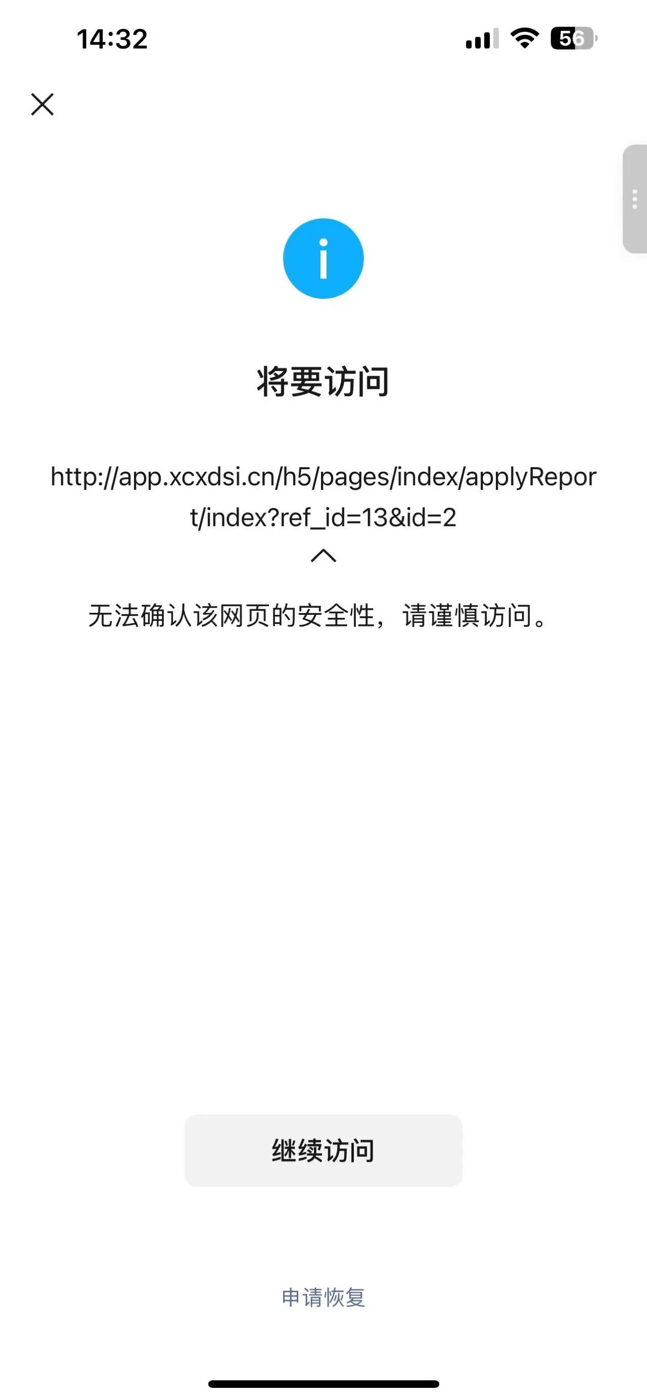 您好,域名在腾讯云注册并备案通过,已经成功通过备案域名:xcxdsi.cn,备案号:湘ICP备2024070905号,服务器也在腾讯云,浏览器访问正常,但是微信访问网站出现“无法确认该网页的安全性,请谨慎访问”,经检查网页里没有不安全的内容,请核实后帮忙解除拦截,谢谢!