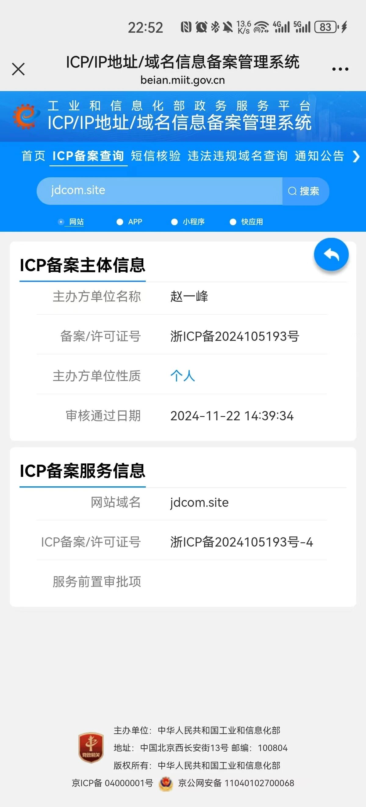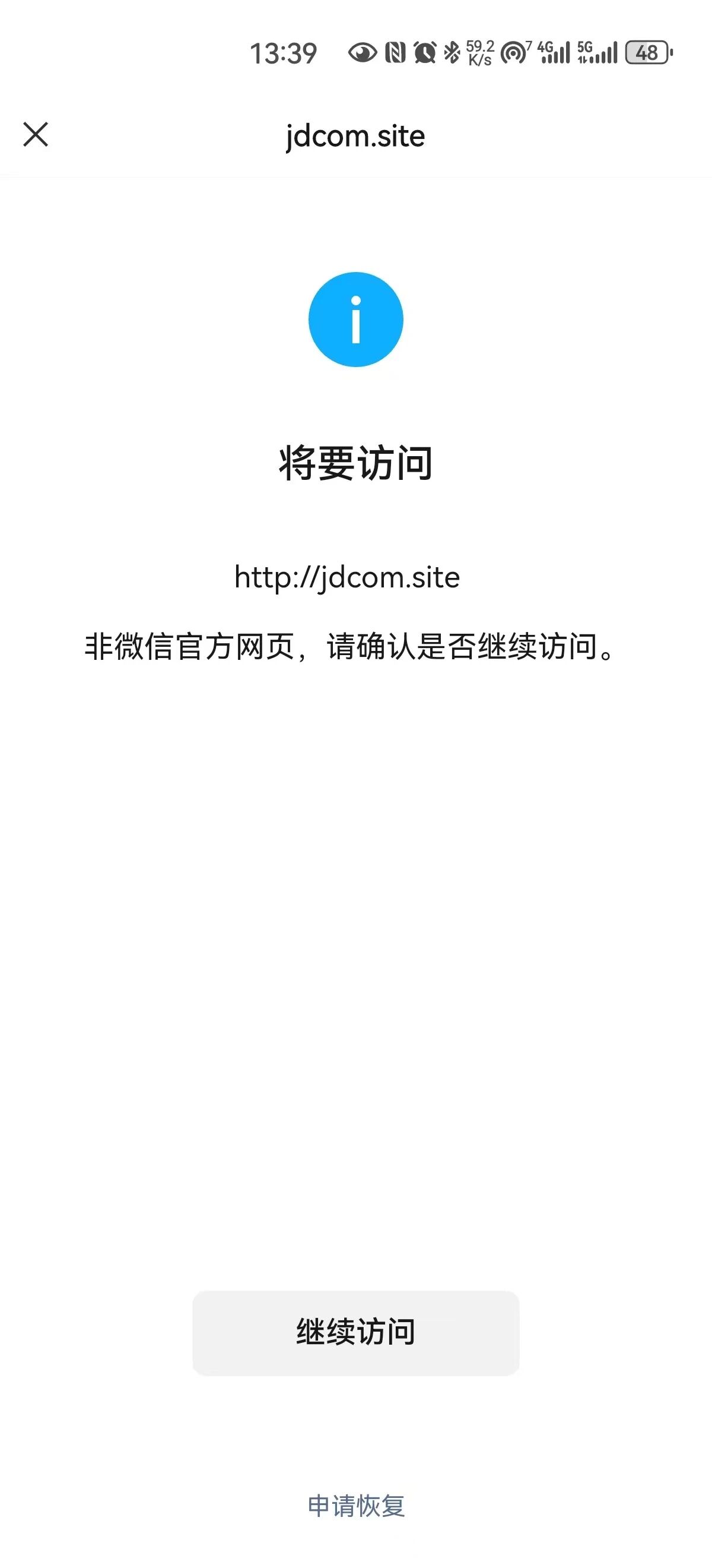 目前域名已经通过icp备案 jdcom.site,且在自己的公众号也加白了,还总在微信打开还是提醒"非微信官方网页,请确认是否继续访问"。帮我解除下,谢谢