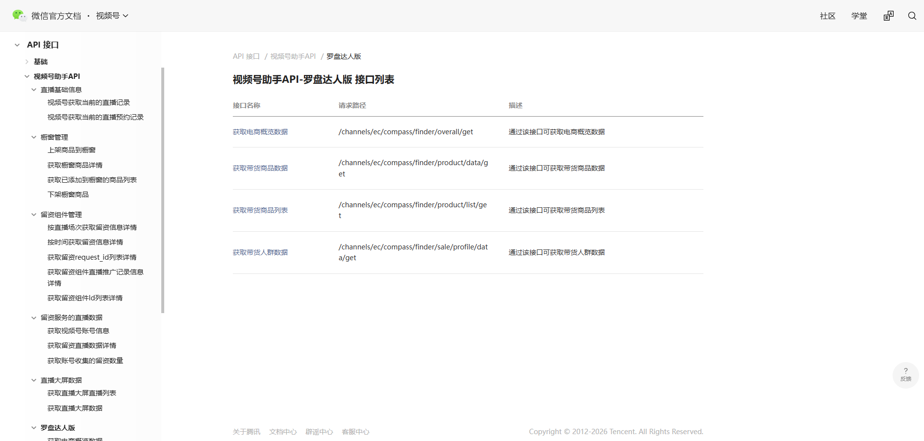 没有公开的API,参考:https://developers.weixin.qq.com/doc/channels/api/channels/compass/