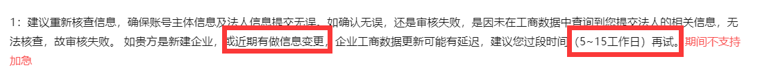 刚变更过企业信息,需要等待15个工作日,不包含周六周日、节假日,参考知识库:https://developers.weixin.qq.com/community/develop/doc/000c88c4fd4228be88194911d51409