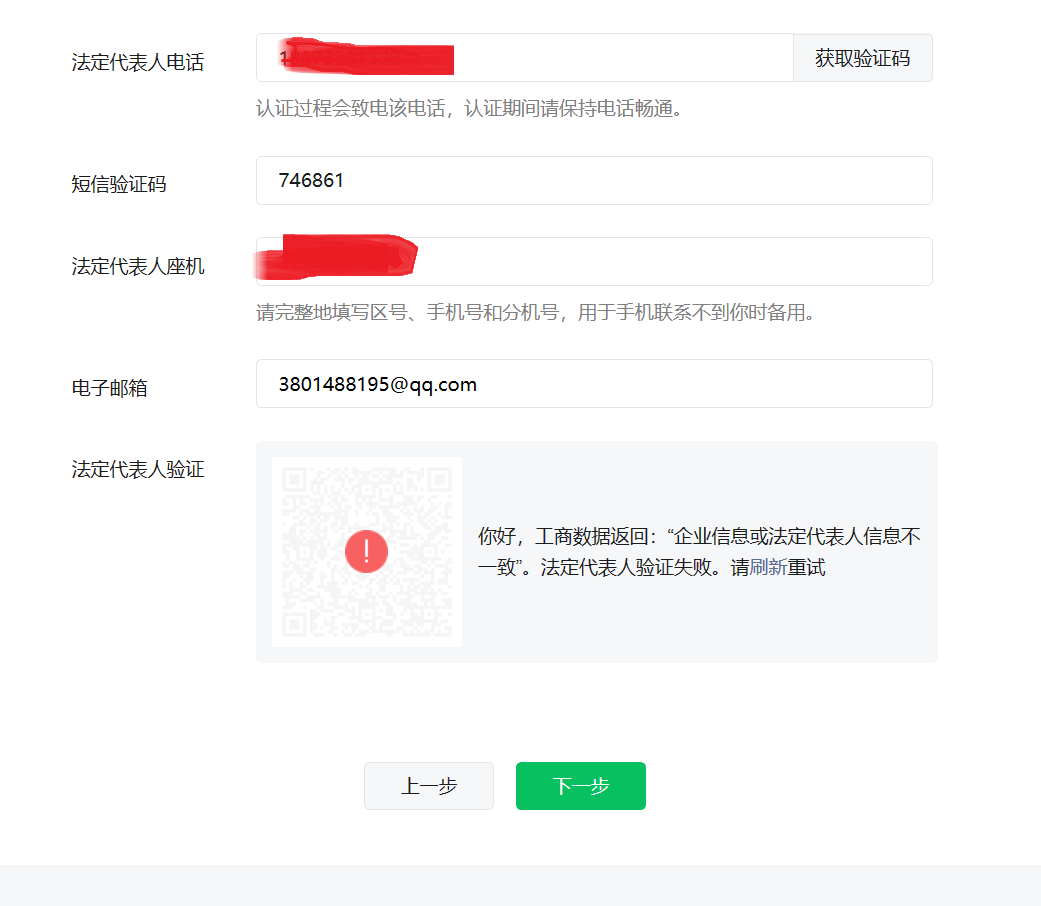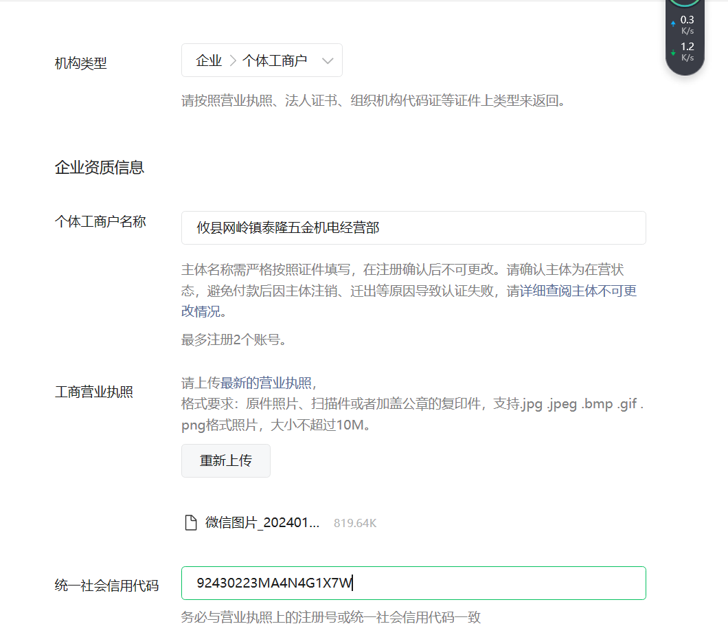 个体工商户小程序微信验证,人脸识别一直通不过,填的内容也仔细核对正确,企业信用网站也能查询到,一直卡在这里,无法继续下去,